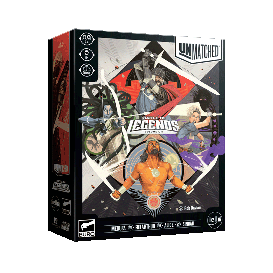 - A caixa de Unmatched: Battle of Legends Volume Um vem com quatro heróis distintos: